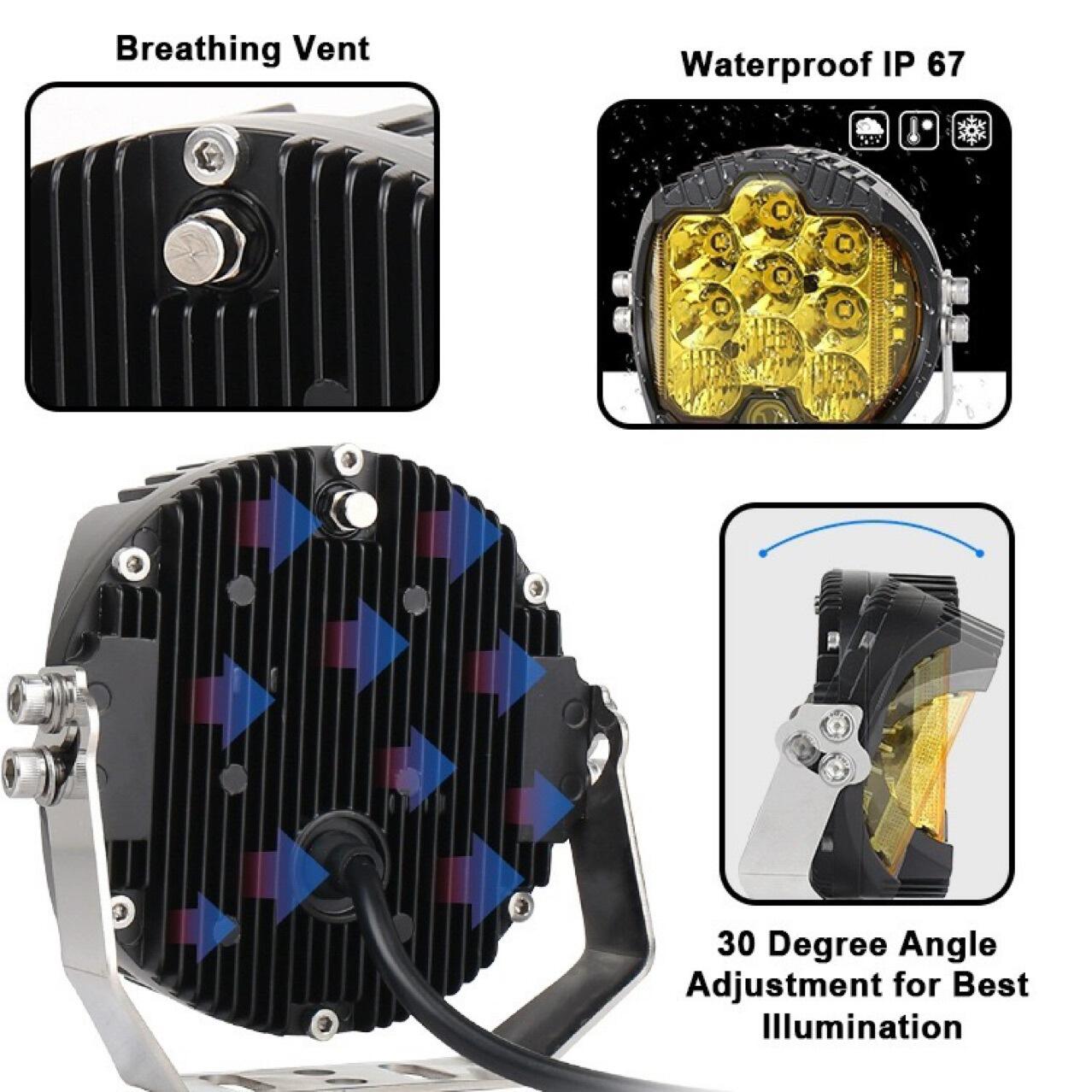 تتم عملية التركيب بسهولة، مع تضمين قاعدة تثبيت متينة لتثبيته بشكل آمن. يعمل شريط الإضاءة هذا: شريط إضاءة ليي لي أف العامل LED الأصفر البرتقالي بقطر 5 بوصات وبقدرة 50 واط ومصنّف وفق معيار IP67، وهو أداة إضاءة متعددة الاستخدامات ومتينة وقوية، مثالية لسائقي المركبات خارج الطرق وللعاملين. إن لونه البرتقالي، وأنماط حزمة الضوء المدمجة (Combo Beam)، وبنيته الصلبة، كلها عوامل تجعل منه خيارًا ذكيًّا لأي شخص يحتاج إلى إضاءة موثوقة في الظروف الصعبة.