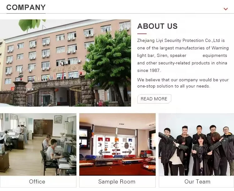Zhejiang Liyi Security Protection Co., Ltd is one of the largest manufactories of Warning light bar, Siren, speaker, police equipments and other security-related products in china since 1987